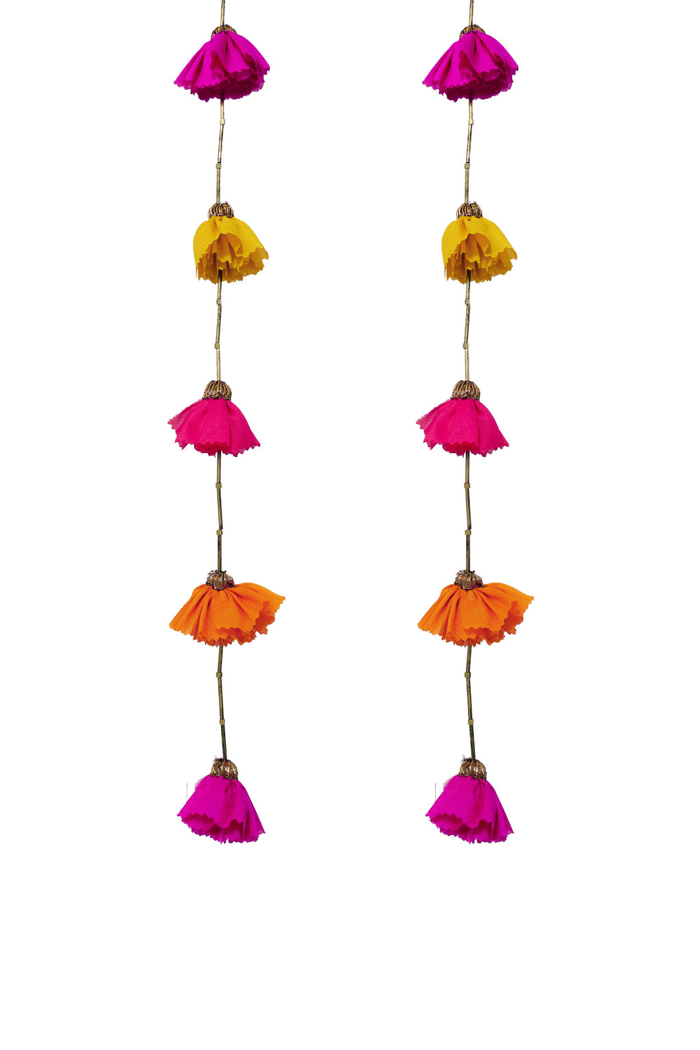 Strings of textile flowers hanging on either sides of the doorway are considered auspicious in Indian homes. Pure Ghee's signature handmade Marigold flowers in bright colours add festivity and cheer to any space.